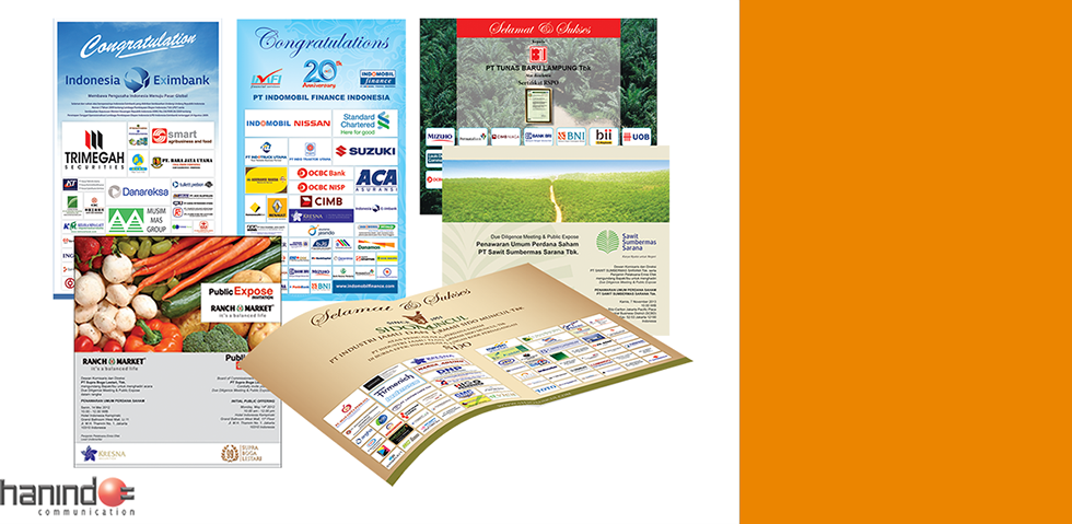 We are convinced that at present Hanindo has become a major player in providing such business services as Advertising, Printing and Event Organizer to Indonesia Capital Markets.